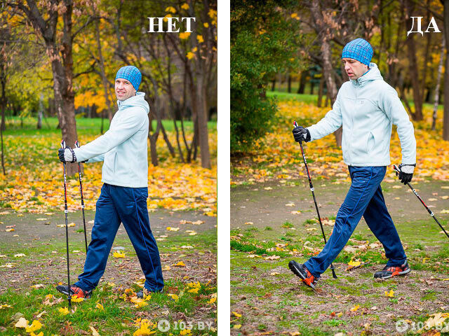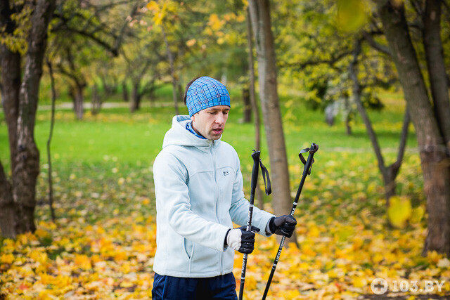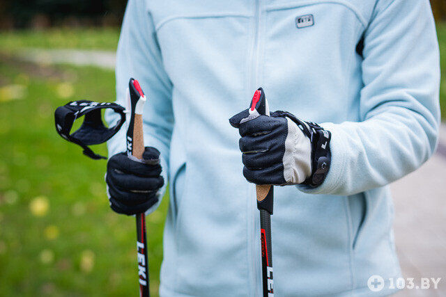 — Еще один стереотип. Занятия скандинавской ходьбой — это физкультура. Именно поэтому тренироваться нужно в спортивной обуви. Осенью и зимой — в утепленной. Подойдут даже беговые кроссовки, а также обувь MBT. Важно лишь, чтобы в ней была мягкая подошва, а ступня работала полностью, с пятки на носок. При этом постановка ноги с мягким пружинистым коленом.