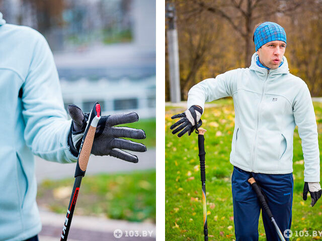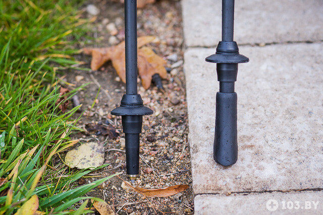 — Нет, нет, нет и еще раз нет. Палки для трекинга выглядят массивнее. Их белорусы, как правило, покупают за границей, там выгоднее. Потом они решают заниматься ходьбой по равнине, с инвентарём, который предназначен для горных восхождений. С одной стороны, рукоятка эргономичная. Есть возможность опереться сверху, перехватить палку пониже. В трекинге длина палки меняется в зависимости от подъёма или спуска. Лямка (ремешок вокруг руки) выполняет номинальную функцию, чтобы быстро освободить руку.