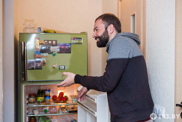 — Работаю я, как правило, допоздна. Бывает, что по пути домой заезжаю в кулинарию «Соседи» и покупаю там готовую еду со скидкой. Если хочется только хлеба или чего-то по мелочи, то захожу в ближайший к дому магазин. В последнее время активно пользуюсь услугой доставки от «Евроопт». Удобно. Цены те же, ходить никуда не надо. Я просто просыпаюсь пораньше, делаю заказ, потом опять сплю, а спустя пару часов приезжают продукты. Холодильник у меня всегда полный.
