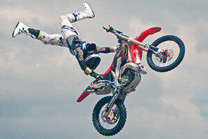 Грандиозное шоу по мотофристайлу. Главная звезда мотофристайла в России Алексей Колесников со своей командой будут выполнять невероятные трюки на высоте 15 метров, длина полёта — 35 метров.