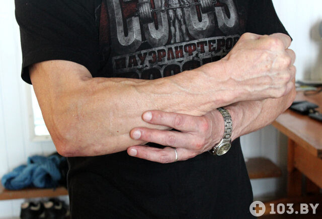 — Это все так, детские игры. Однажды при поднятии корпуса аж скамейку сломал. Вчера была тяжелая тренировка, поэтому сегодня немного отдыхаю. Раньше я подтягивался по три раза на правой и три раза на левой руке. Сейчас придет мой ученик, и я продемонстрирую вам еще одно упражнение «для пенсионеров», — пошутил смолевичский силач.