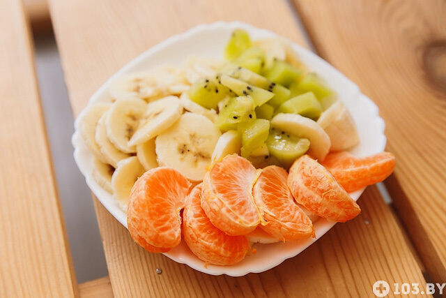Что добавлять — каждый решает сам для себя. Мы, например, использовали киви, бананы и мандарины.