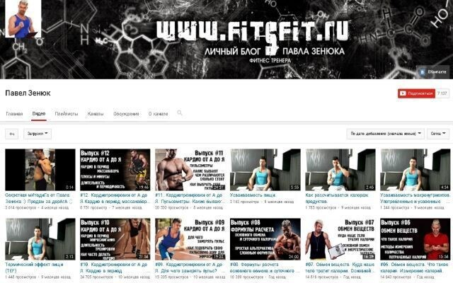 «Развивайся, тренируйся, питайся, меняйся вместе с Павлом Зенюком». Помимо уже привычной демонстрации упражнений, Павел Зенюк рассказывает о вещах, которые не затрагивались другими блогерами. На этом канале вы можете взглянуть на спорт и с медицинской стороны: нужны ли жиросжигатели, какие бывают типы пульсометров, как произвести расчет калоража продуктов и какова роль белка в организме человека.