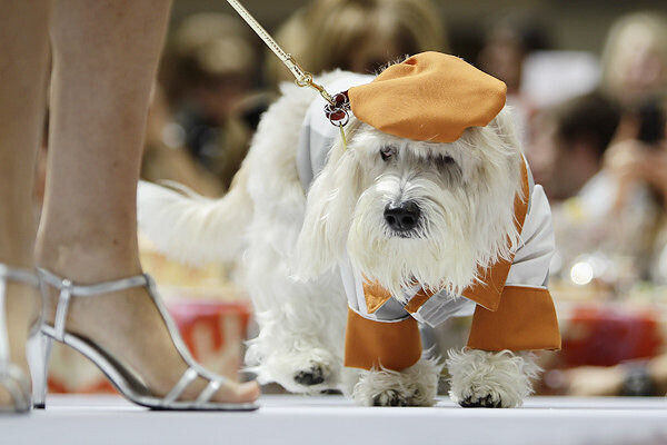 Совсем другое дело — одежда декоративная, призванная лишь украсить питомца (по мнению хозяина), привлечь к нему внимание в определенном обществе или продемонстрировать свое богатство. Тут в ход идет все: разнообразнейшие материалы от шифона до латекса, самая невероятная отделка от перьев до пайеток, а порой даже драгоценные металлы и камни.